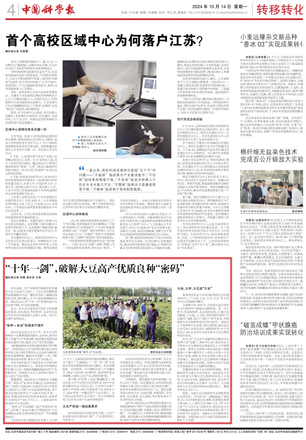 【中国科学报】“十年一剑”,破解大豆高产优质良种“密码”
