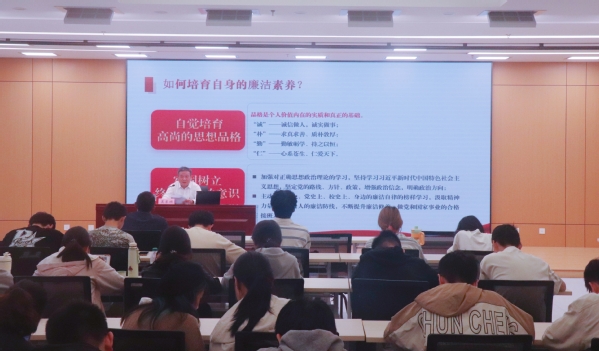 10月15日下午,我校党委副书记、纪委书记吴荣顺在滨江校区大学生活动中心为本科生讲授廉洁教育专题思政课。