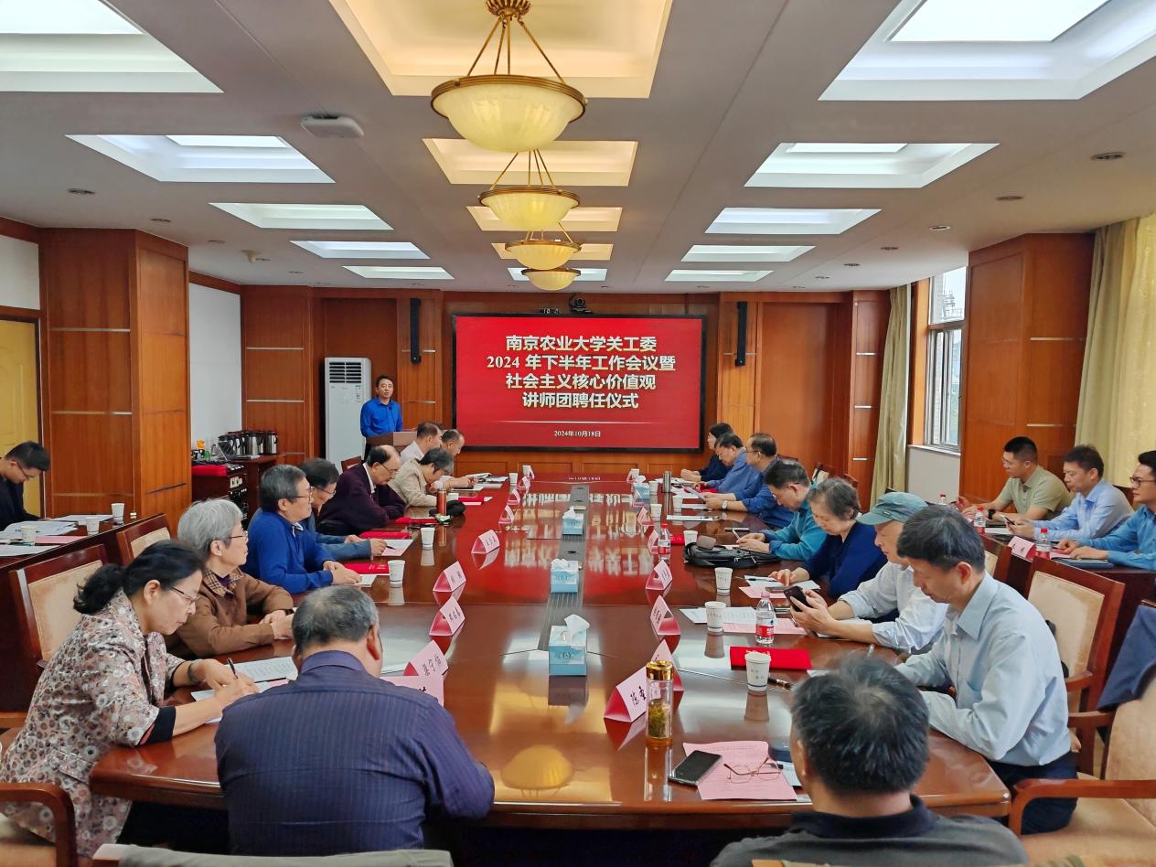 10月18日上午,学校在行政楼召开关工委2024年下半年工作会议,并举行关工委社会主义核心价值观讲师团聘任仪式。校党委常委、关工委常务副主任吴群,关工委常务副主任盛邦跃,校关工委讲师团成员、校关工委全体成员,各二级关工委负责人等30余人参加会议。