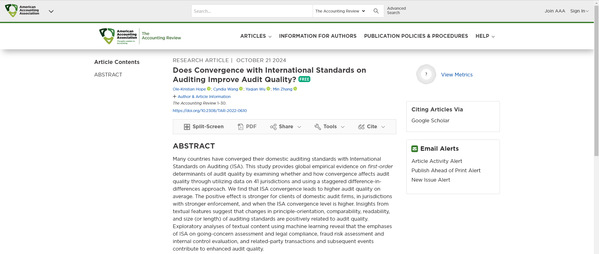 文章链接:https://publications.aaahq.org/accounting-review/article/doi/10.2308/TAR-2022-0610/13066/Does-Convergence-with-International-Standards-on
