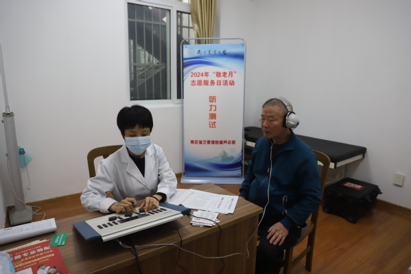 听力测试项目吸引了众多老同志参与,该项目由南京瑞芝康健悦馨养老院特邀立聪堂专家现场服务。参加测试的老同志们会心地交流测试结果,表示今后要更加关注自己的听力健康。