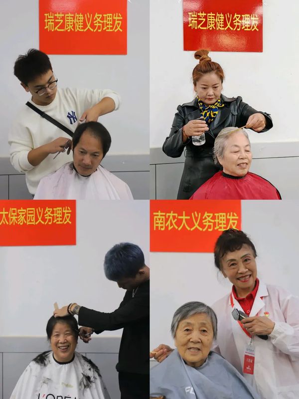 义务理发是十分受老年朋友们欢迎的服务项目。来自太保家园、瑞芝康健的理发师们与我校退休教工志愿者胡维京老师以精湛的技艺和热情的服务,为老年朋友们带来了清爽和自信。剪刀在理发师们的手中飞舞,不时整洁利落的发型便呈现在眼前。老年朋友们对着镜子欣赏着自己的新发型,脸上洋溢着幸福的笑容。