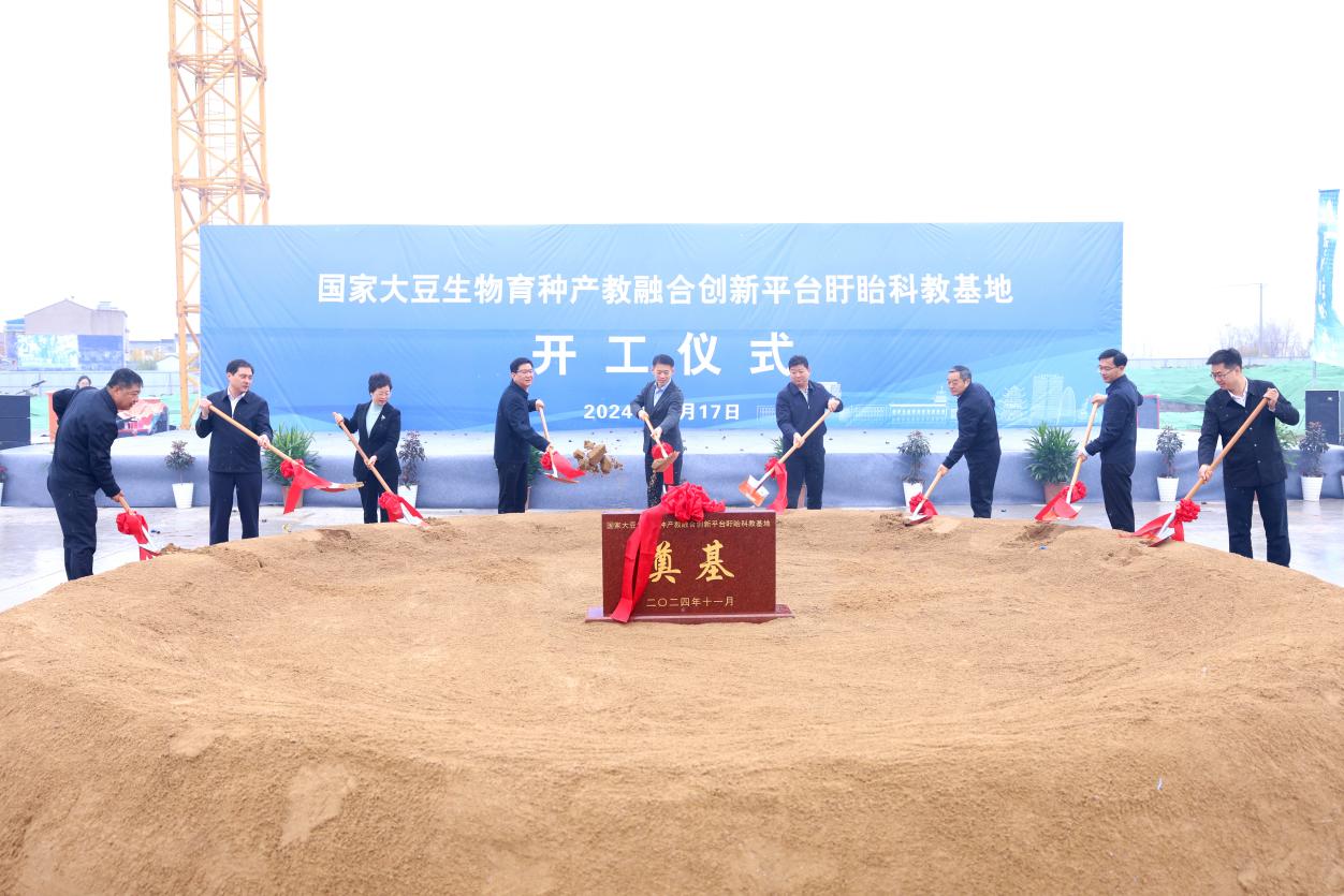 11月17日,国家大豆生物育种产教融合创新平台盱眙科教基地开工仪式举行。ios版雷竞技官网党委书记王春春,党委副书记刘营军,副校长朱艳,淮安市副市长邱华康,盱眙县委书记孙志标,县委副书记、县长王长俊,县人大常委会主任林波等领导嘉宾出席仪式。