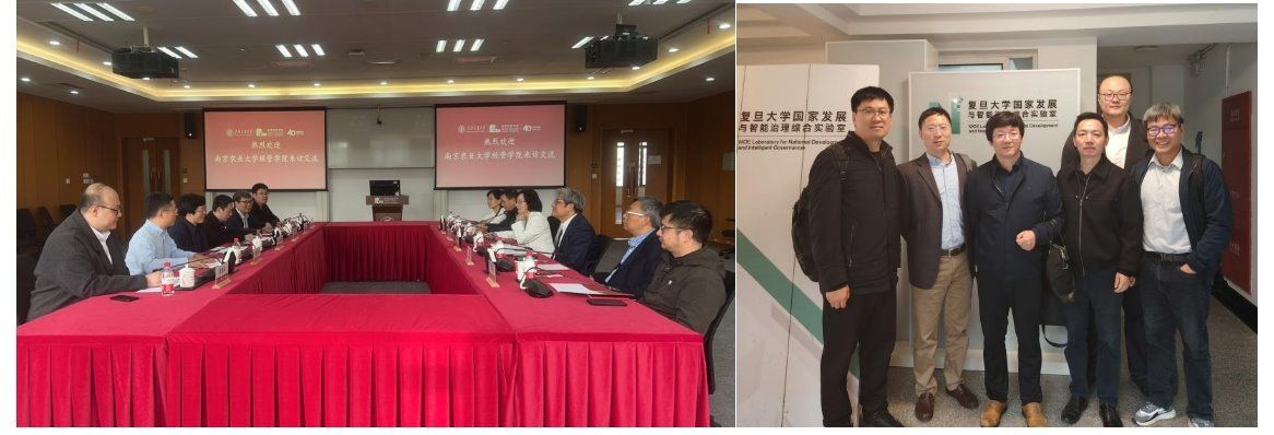 近日,经济管理学院院长徐志刚、前沿交叉研究院党总支书记林光华率队,调研了教育部哲学社会科学实验室“复旦大学国家发展与智能治理综合实验室”“上海交通大学数字化管理决策实验室”,农经系主任展进涛、经贸系主任纪月清,以及实验室骨干成员李昊洋、张宗利随队参加调研。