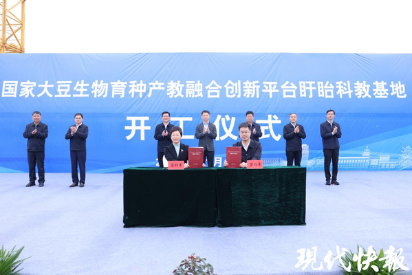 现代快报讯(通讯员 王璐 记者 李楠)前不久,国家大豆生物育种产教融合创新平台盱眙科教基地举行开工仪式。ios版雷竞技官网党委书记王春春,党委副书记刘营军,党委常委、副校长朱艳,淮安市副市长邱华康,盱眙县委书记孙志标,县委副书记、县长王长俊,县人大常委会主任林波等领导嘉宾出席仪式。