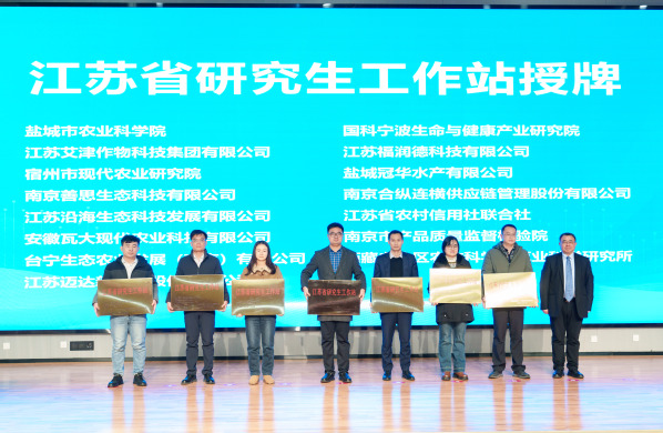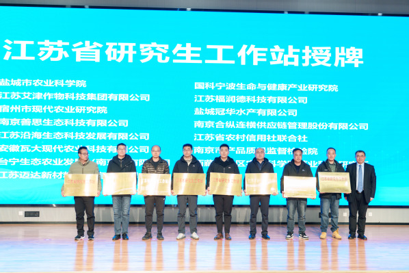 会议为2024年我校新增15家江苏省研究生工作站授牌,评选出余庆辉、王海海为“第七届做出突出贡献博士学位获得者”,马秀鹏等10人为本年度优秀导师,环境生物学与健康团队等3个团队为优秀导师团队。副校长丁艳锋宣读表彰决定,校长陈发棣、校学术委员会副主任张绍铃院士、副校长董维春等为获奖代表授牌及颁奖。