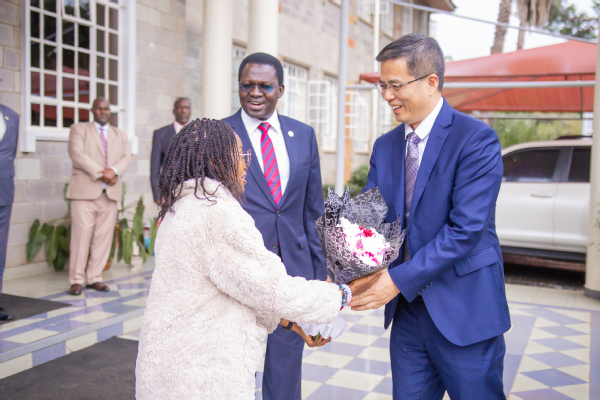 11月28日,在肯尼亚大使馆,中国驻肯尼亚大使馆大使周平剑接见了王源超一行。中国驻肯尼亚大使馆公使衔参赞张执中详细介绍了肯尼亚当地农业产业、农业高等教育的基本情况,希望ios版雷竞技官网继续发挥学校优势与特色,不断拓展与肯尼亚农业科技与人才培养领域的合作空间,为中肯双边友好、两国合作共赢迈上新台阶作出新的更大贡献。王源超在交谈中表示,学校将继续发挥我校埃格顿大学孔子学院“中文+农业”优势与特色,做强孔子学院与中国-肯尼亚作物分子生物学“一带一路”联合实验室的“中肯公共外交品牌”,在中肯科技合作、教育国际合作等方面,不断促进肯尼亚农业现代化和中肯民间友好。
