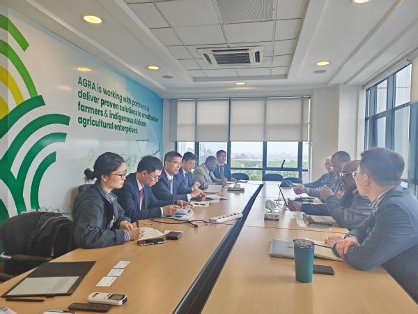 11月27日,代表团一行访问了总部位于肯尼亚、由联合国前秘书长科菲·安南先生于2006年成立的非洲绿色革命联盟(AGRA),联盟副主席汉玛德·波加(Hamadi Boga),东南非洲地区主任让·杰克斯·穆西德(Jean Jacques Muhindar),中国伙伴项目主任、我校客座教授程诚等机构负责人与代表团进行亲切交谈。双方期待进一步建立合作友好关系,搭建更为广阔的对非合作平台,在农业领域寻求共同发展,为实现联合国可持续发展议题达成共识。
