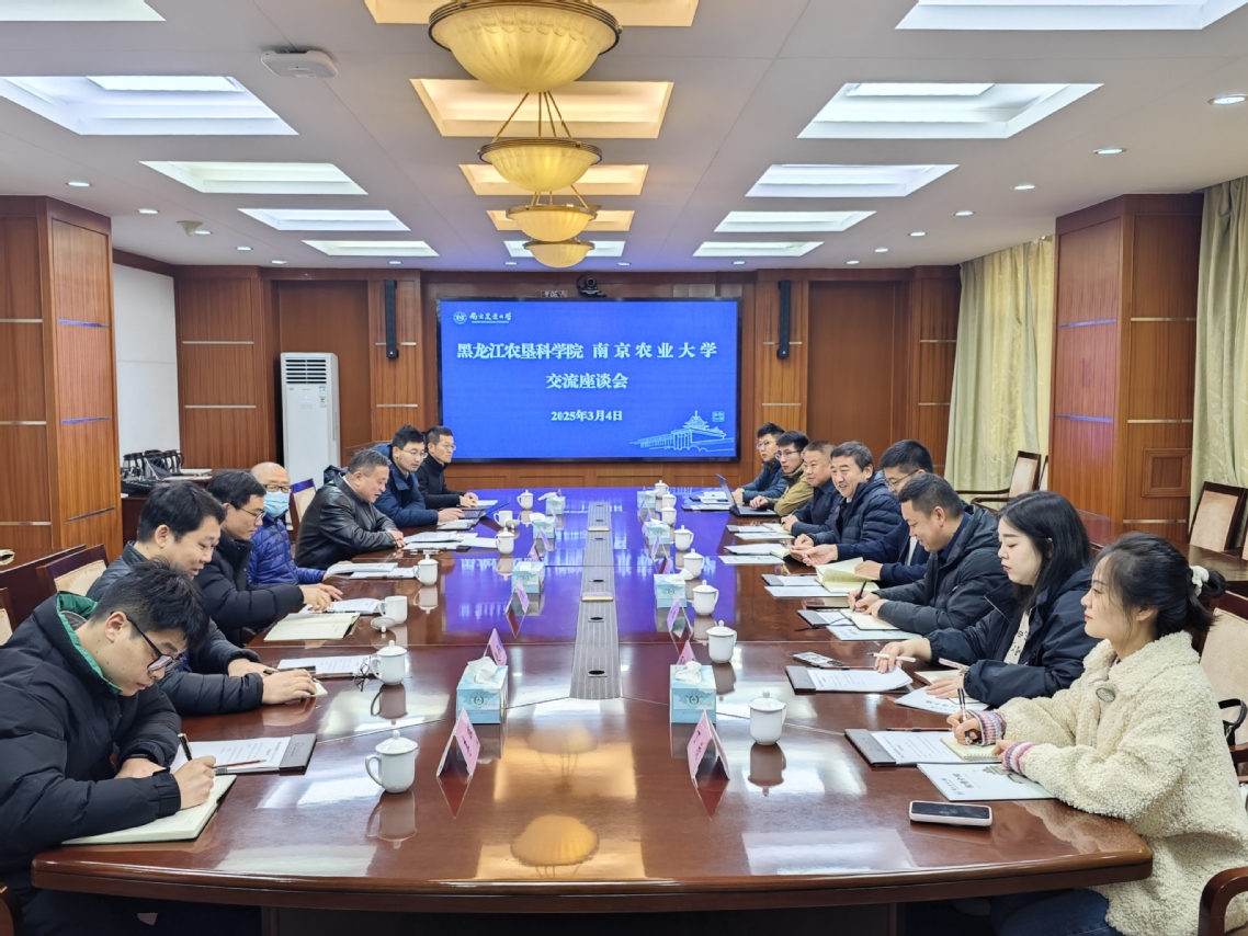 黑龙江省农垦科学院经济作物研究所、植物保护研究所、农业信息化研究所、科研处负责同志及工作人员,我校校长办公室、科学研究院、农学院、植物保护学院负责同志及工作人员参加交流座谈。
