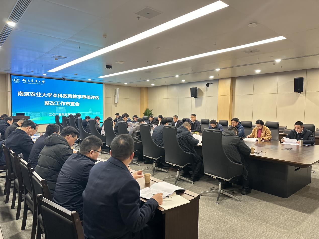 刘营军指出审核评估是学校贯彻落实立德树人根本任务的具体行动,也是对我校本科人才培养质量的一次全方位、立体式检阅,做好审核评估整改工作关系到学校的教育教学质量和长远发展,要高度重视、扎实落实。他强调一是要高站位谋篇布局,落实立德树人根本任务,将问题整改与提升质量紧密结合,将两年整改与长远发展紧密结合,将本科人才培养与学校全面发展紧密结合,明确未来本科教育教学改革目标任务和时间节点,明晰推进“施工图”和“路线图”。二是要高标准狠抓落实,深化教育教学改革实践,建立责任明晰、链条完整、环环相扣的工作机制,强化部门协同与跟踪问效,以体系化的制度改革推动工作改革、以持续性的机制优化促进效能提升。三是要高质量务求实效,筑牢人才培养南农质量,强化系统观念,不断健全内部质量保障体系,加强质量文化内涵建设,以人才培养的“南农质量”书写教育强国、农业强国建设的“南农答卷”。