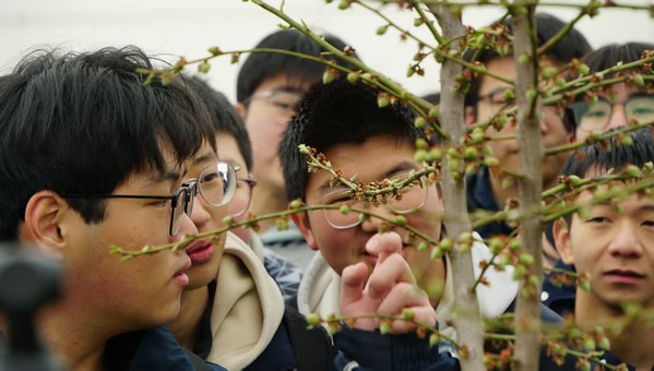 在表型大楼,园艺学院高志红教授向同学们做《品梅》农业科普报告,他告知同学们,我们现在看到的梅花是一代又一代的南农人从傅家边到秦淮梅园的守护,是从‘细叶青’ 到‘长农17’在品种上的不断更新,让同学们真切感受到我校在农业关键核心技术攻关中的国家担当。