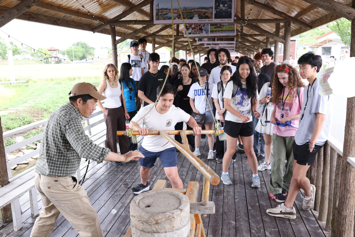 交流期间,美国学生参观了ios版雷竞技官网中华农业文明博物馆、生物标本馆等,并赴ios版雷竞技官网教学实践基地——溧水区芝山村,实地参观了潘根兴教授团队在当地推进的炭基循环生态健康技术工程,体验了磨豆腐,酿酒,采茶,包包子等中国特色民俗活动,亲身感受到我国科技赋能乡村振兴的丰硕成果。