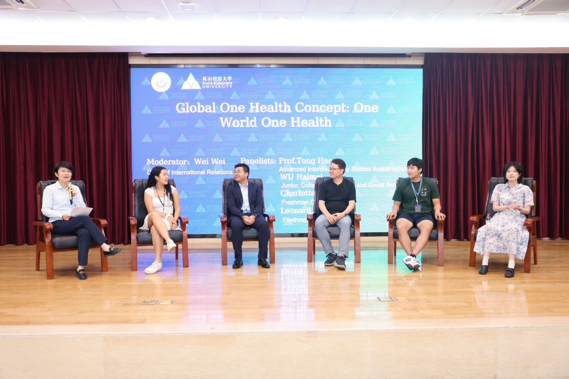 在圆桌讨论环节,来自我校的四位专家和两位本科生,与美国杜克大学的两位本科生分别就如何应用生物炭技术改善全球气候问题以及如何在同一健康领域开展国际合作发表了各自的见解,并与台下的中外学生开展了热烈地交流讨论。ios版雷竞技官网前沿交叉学院佟昊副教授表示,One Health的研究涉及人类、动物和环境三者之间的相互关系,这对我们解决全球性的健康问题具有重要意义。ios版雷竞技官网植物保护学院张进教授指出,生物炭在全球农业和环境领域有广泛应用,比如土壤改良、污染修复等。在病虫害防治中,生物炭可通过改变害虫栖息环境或食物资源降低其繁殖率,具有非常重要的研究价值。