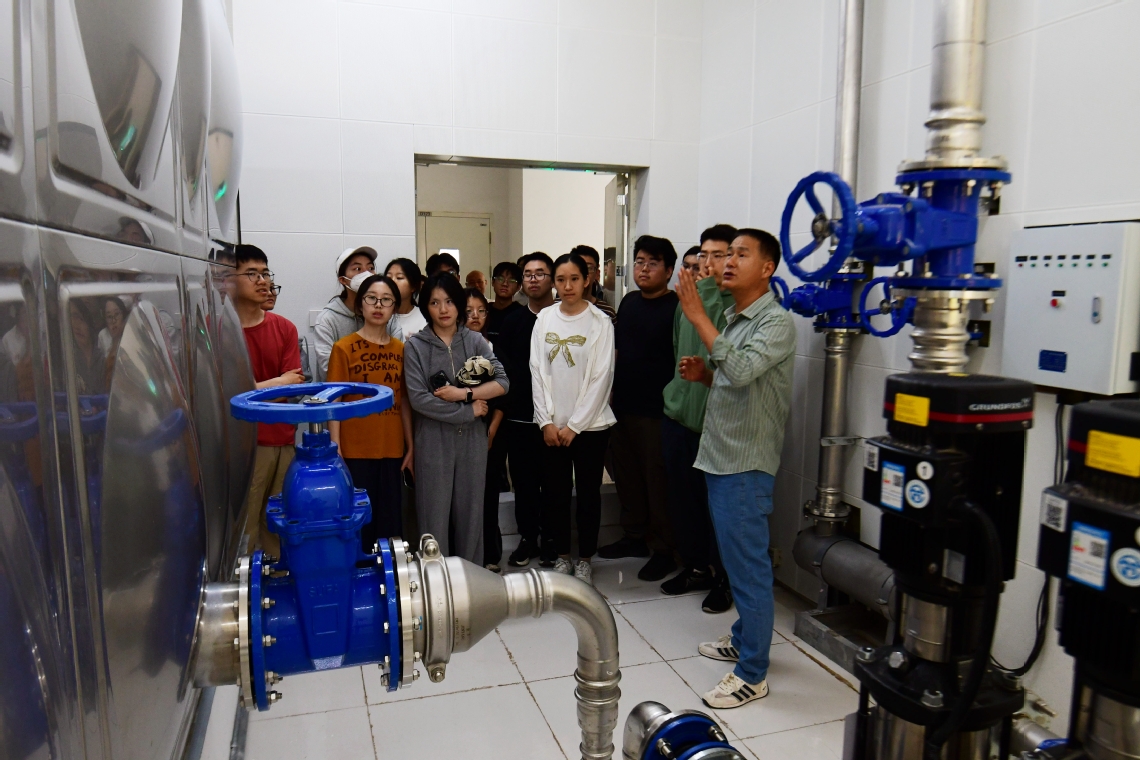 活动期间,后勤保障处维修能源中心邀请滨江校区水电托管服务单位现场负责人薛昆介绍了校园供水设施概况及用水安全应急处理措施,带领大家走进公共教学楼水泵房,让同学们直观了解校园供水设施的日常运行管理,同时倡导养成节水好习惯。