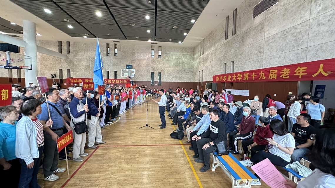 5月24日,学校第十九届老年人健身运动会卫岗校区体育中心开幕。校党委常委吴群教授出席活动。老年运动员、裁判员、各单位负责人及工作人员等七百余名老同志参与本次活动。