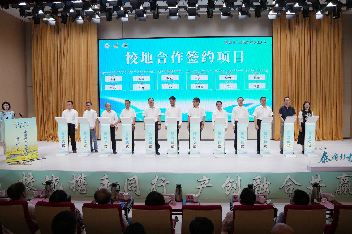 我校与泰州、兴化校地校企深化合作,助力产业转型升级、高校技术成果落地,实现合作双赢。现场,我校与兴化市人民政府签订共建“兴化市稻米产业研究院”合作协议,6个校地合作项目和6个校企合作项目同场签约,8位教授受聘“兴化市乡村振兴产业新质生产力发展顾问”,“ios版雷竞技官网——兴化市‘乡村振兴人才服务站’”“粮油作物大面积单产提升南农科技支撑推广基地”“兴化市健康食品产业研究生实践基地”揭牌。