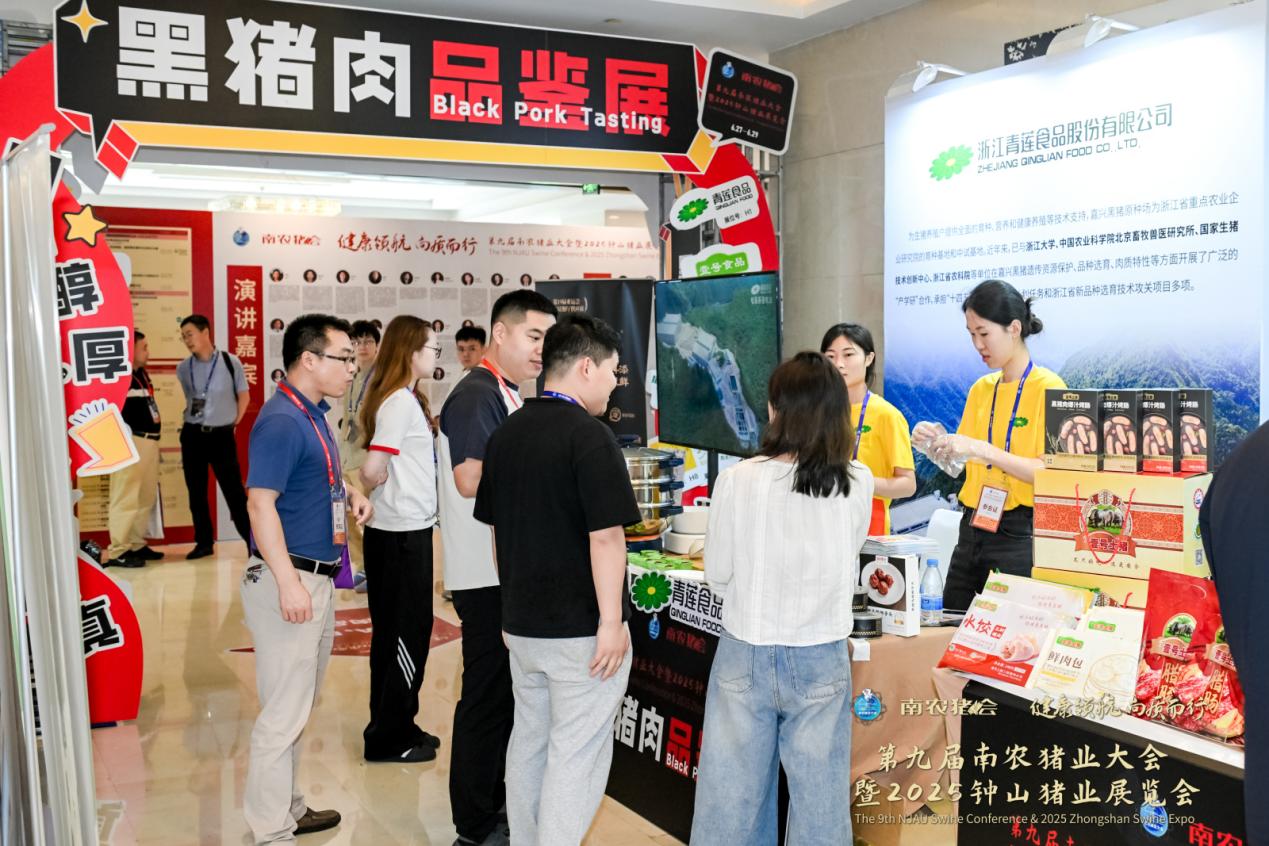 此外,大会还设立展览区,吸引来自默沙东、南农高科等50余家企业参展,展示了生猪行业最新的品种、养殖设备、饲料与添加剂、兽药疫苗等产品和技术。大会特别增设空滤大集和黑猪肉品鉴活动,为参展企业和参会者搭建更为紧密的交流与合作平台。