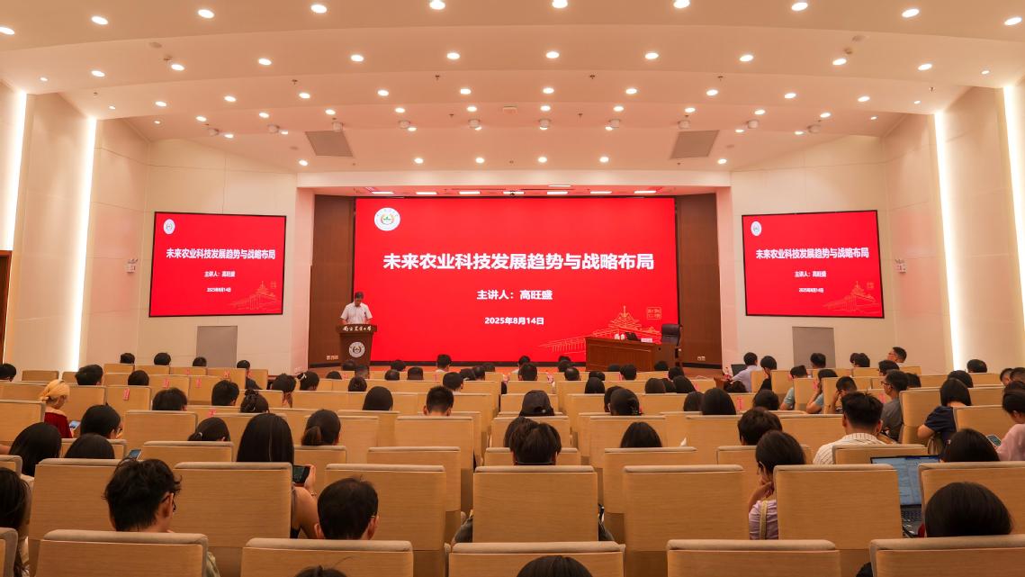 8月14日,中国农业大学国家农业科技战略研究院院长、国家农业科技战略智库联盟执行理事长高旺盛教授应邀为我校作题为“未来农业科技发展趋势与战略布局”的专题报告。副校长王源超、朱艳出席报告会,各学院、各单位负责人及师生代表共200余人参加了报告会。报告会由王源超主持。