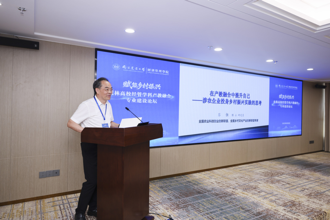 论坛设置“洞见市场趋势·融合育人路径”主旨报告环节。蔡恒作"在产教融合中提升能力——涉农企业投身乡村振兴的实践思考"专题报告,结合具体案例阐释产教融合对涉农主体发展的促进作用;袁靖宇以"以高等教育之强引领江苏高质量发展"为题,从高等教育服务区域发展的战略高度,剖析了产教融合对人才培养的支撑作用。