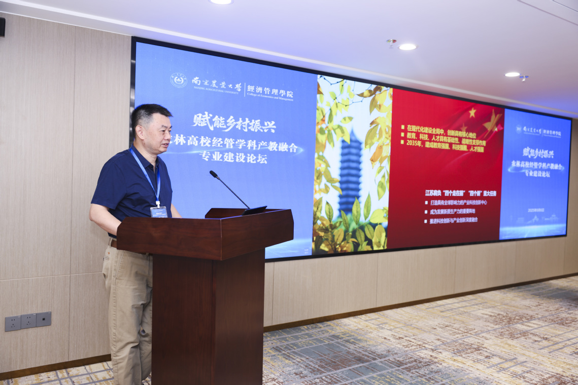 董维春在致辞中围绕“产教融合的内涵”“南农农经产教融合先例”“农经专业未来建设路径”三个方面展开论述。他指出,本次论坛既是对国家“深化产教融合”战略的积极响应,更是破解农经领域人才与产业需求错位、理论与实践脱节问题的重要探索。他期待与会各方凝聚共识,通过校企协同研制培养方案、共建课程体系、共筑实训平台,为培养"懂经营、善管理、知农爱农"的新型农经人才贡献力量。