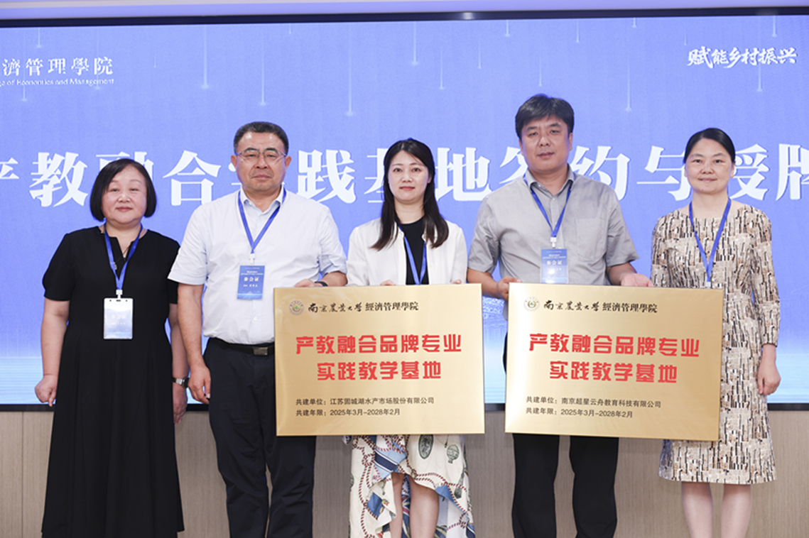 会上,汇通数科智能科技有限公司、中华联合财产保险股份有限公司江苏分公司、江苏固城湖水产市场股份有限公司、南京超星云舟教育科技有限公司、南京金色庄园农产品有限公司、江苏九州诺亚农业科技有限公司等6家企业与经济管理学院签署产教融合实践基地协议并举行授牌仪式。
