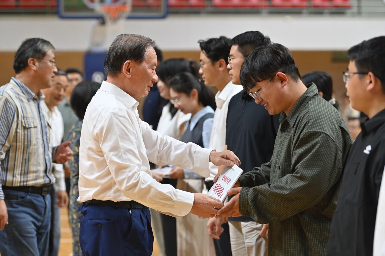 刘营军代表学校向获奖师生表示祝贺。他指出,“未来基金”设立三年来,如一粒“火种”点燃了师生的奋进热情,在学科建设、团队发展与人才培养等方面取得显著成效。此次活动将颁奖仪式与新生入学教育课堂搬进篮球赛场,更是学术创新与体育精神的深度融合,是院士领航“师生共同体”建设的生动实践。