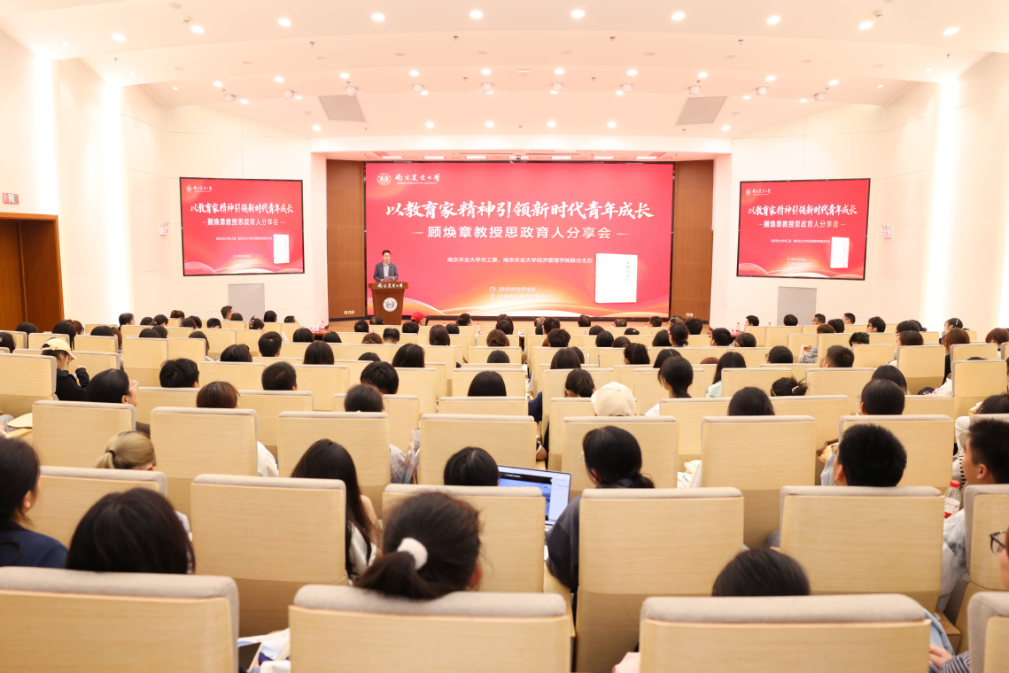 10月15日,“以教育家精神引领新时代青年成长——顾焕章教授思政育人分享会”在我校卫岗校区图书馆报告厅举办。校党委副书记、纪委书记吴荣顺,江苏社科名家顾焕章教授、钟甫宁教授等出席活动。在宁校友代表、江苏省方志办原主任左健伟,校关工委常务副主任盛邦跃,以及学校党委宣传部、党委教师工作部,离退休工作处、校友总会办公室(教育基金会办公室)、图书馆有关负责人,经济管理学院负责同志、师生代表近300人参加分享会。