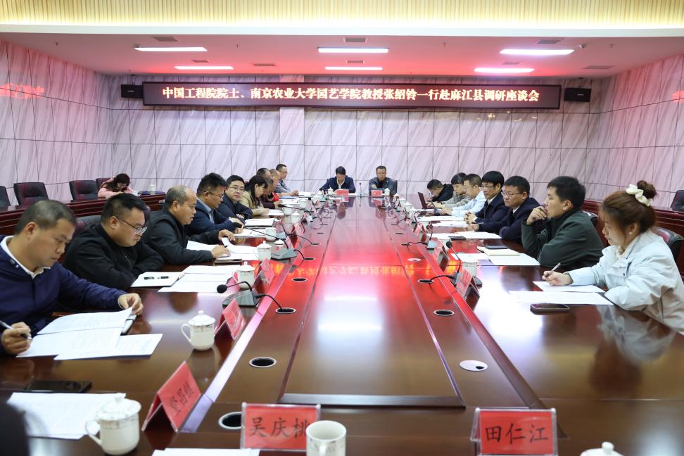 10月22日至23日,中国工程院院士、ios版雷竞技官网园艺学院教授张绍铃带领团队深入麻江县开展定点帮扶调研,为麻江县科技兴农把脉施策。麻江县委副书记、县长卢天成,县委副书记梅松明,县领导丁帮薛、邵士昌等参加座谈或调研。