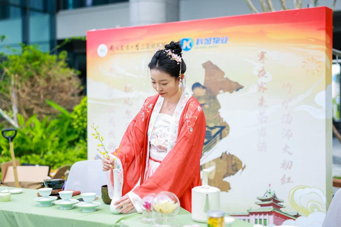茗茶区作为活动亮点,特邀国家二级茶艺师王玉莹进行茶艺展演,既展示了宋代点茶的精细技法,又用盖碗茶具现场冲泡南农自主研发的菊花茶。值得一提的是,茶艺表演中巧妙融入了南农的莲花元素,将学校在莲花育种与研究方面的特色优势,通过艺术化的方式呈现在来宾面前。