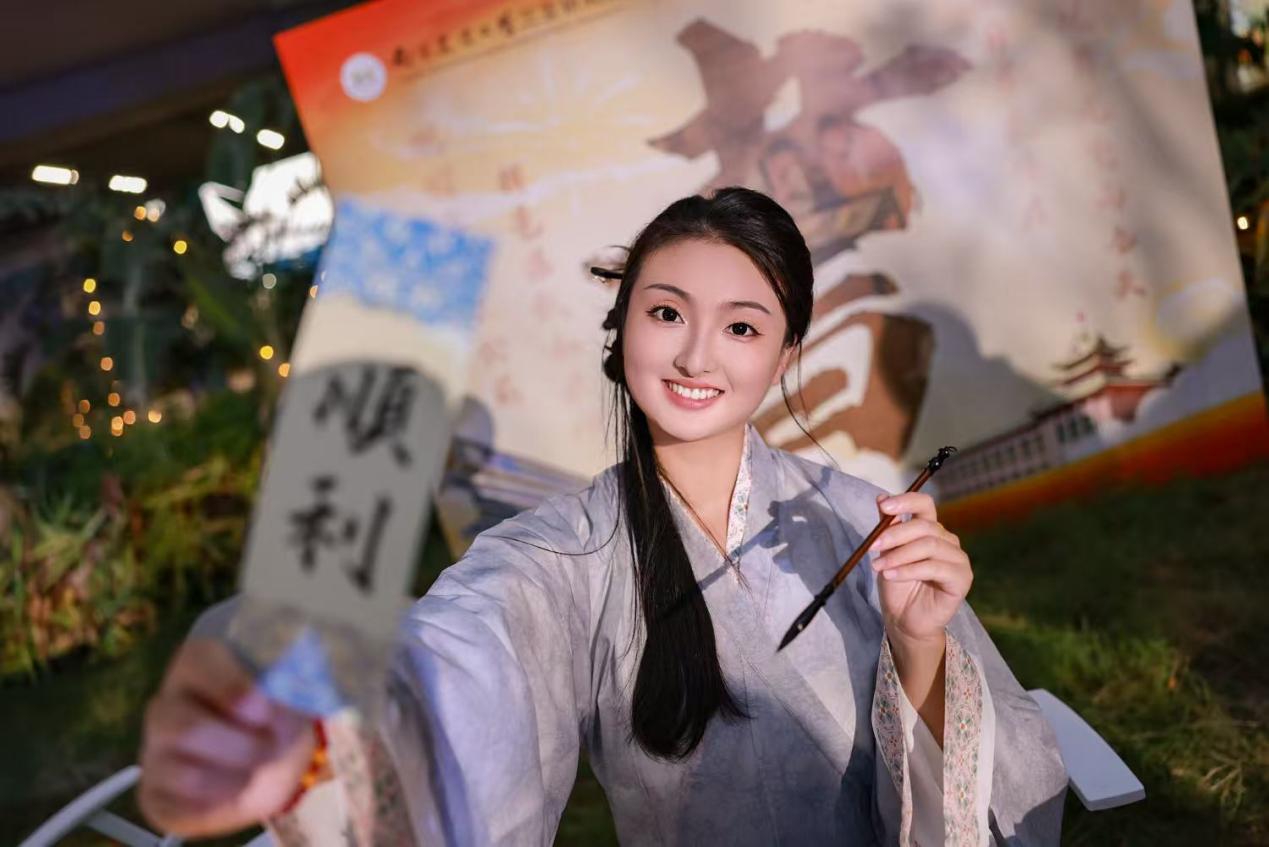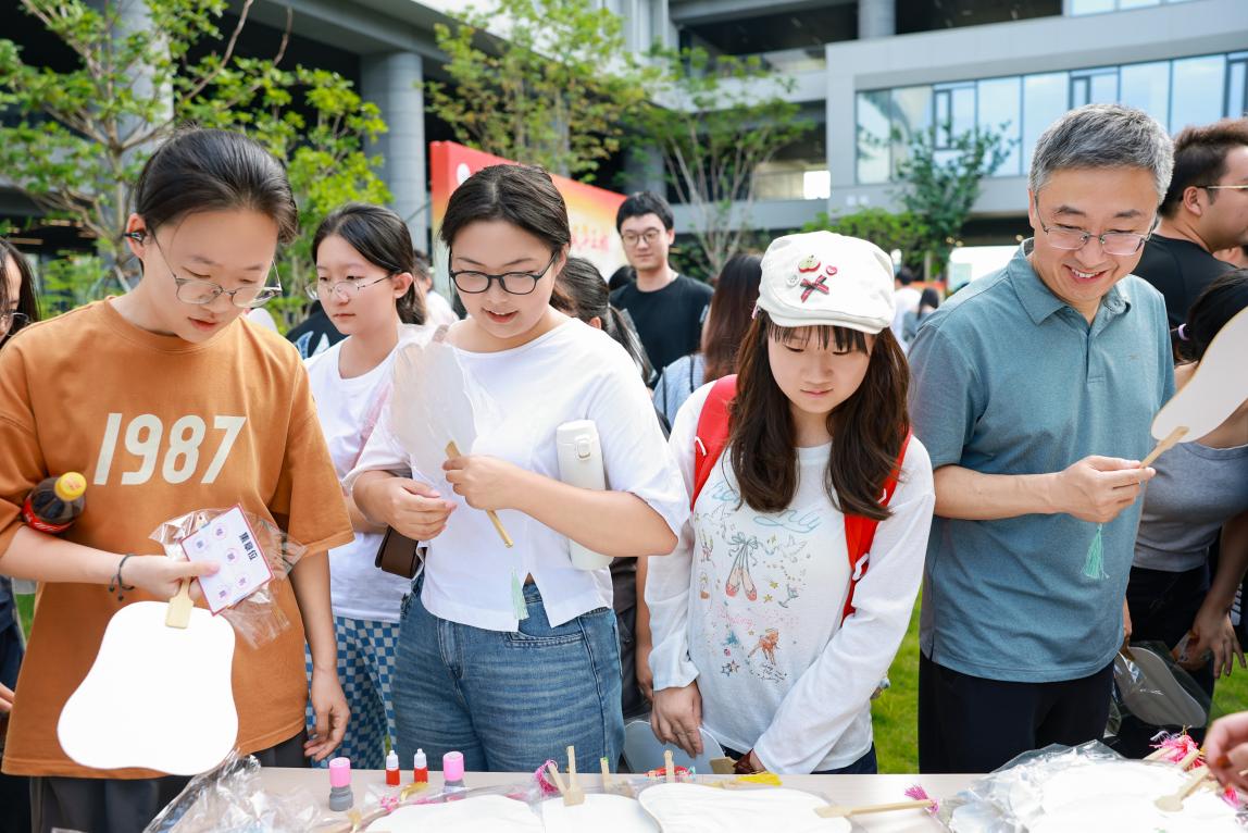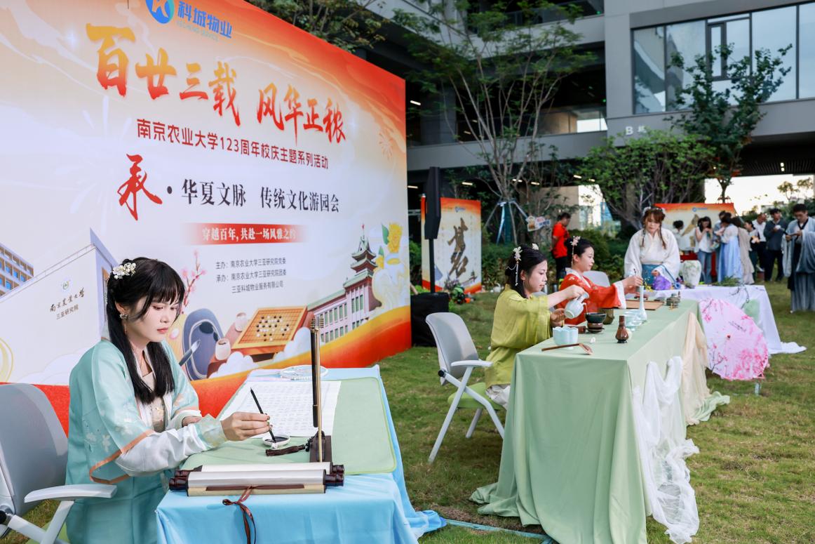 本次游园会以"琴、棋、书、画、茗、食"为主线,精心设置六大传统文化体验区。在琴艺区,上海古琴研究会理事杨贻政先生的古琴演奏,让千年遗韵在南海之滨悠然回荡;棋艺区设有围棋、象棋对弈,参与者在方寸棋盘间体会东方智慧;书法区的师生们挥毫泼墨,以笔墨寄情校庆;画艺区则通过植物印染等创新形式,展现传统艺术的当代生命力。