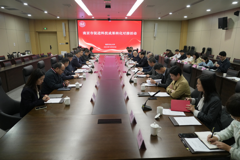 王源超从人才队伍、学科优势、科研成果等方面介绍我校科技成果转化的工作基础。他表示,我校一直以来高度重视科技创新与成果转化工作,此次市领导挂钩科技成果转化工作对接会为新起点,未来也将全力配合小分队工作,期待通过校地协同,打通科技成果转化的“最初一公里”,将推动更多农业科技成果在南京落地生根、开花结果,为南京建设农业强市、实现高质量发展作出更大贡献。
