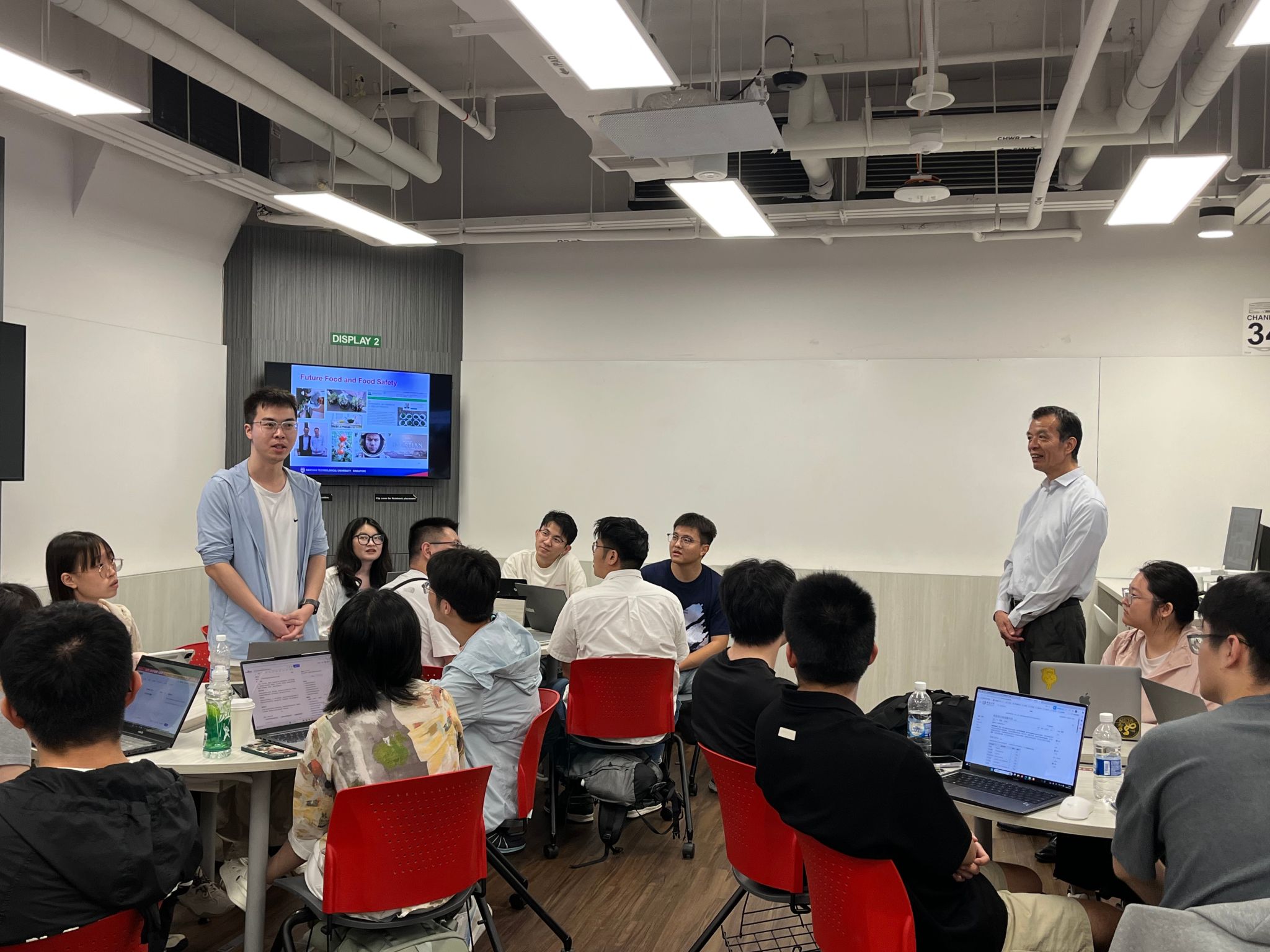 课程学习环节,南洋理工大学William Chen教授运用互动式教学方法,系统梳理了生命科学的基础理论,并结合基因编辑、合成生物学、食品安全、绿色发展等尖端科技案例展开讲解。通过分组讨论与实时问答,教授启发学生主动思考,例如在“微生物发酵”相关专题上,引导博士生围绕技术可行性、市场前景及伦理维度展开深入探讨。此类互动不仅提升了学生的科研思辨能力与英语表达能力,也使其在跨文化学术氛围中,切身感受到生命科学在应对全球粮食安全与资源短缺等现实挑战中的巨大潜力。