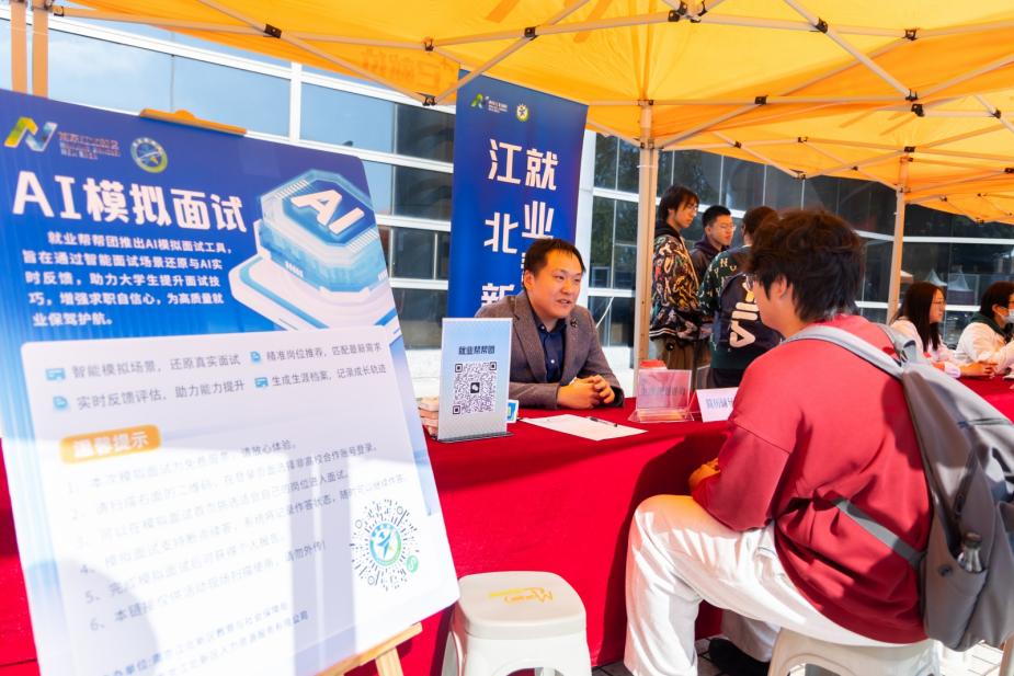 生涯规划咨询专区里,就业指导中心携手江北新区就业帮帮团,为同学们量身定制学业发展与职业规划方案,助力未来成长之路。