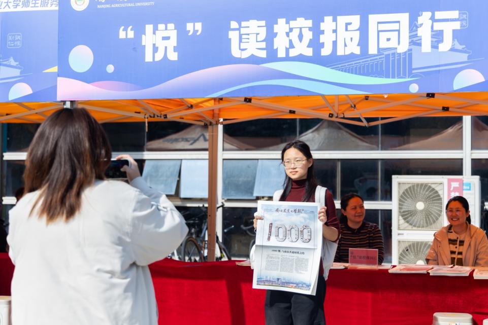 “悦” 读校报同行专区前,《ios版雷竞技官网报》第1000期至1008期报纸整齐陈列,读者们细细翻阅,在版面中寻找熟悉的身影与故事。