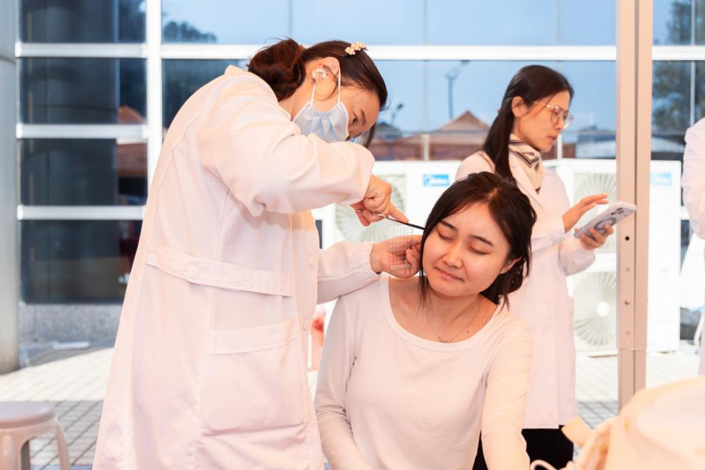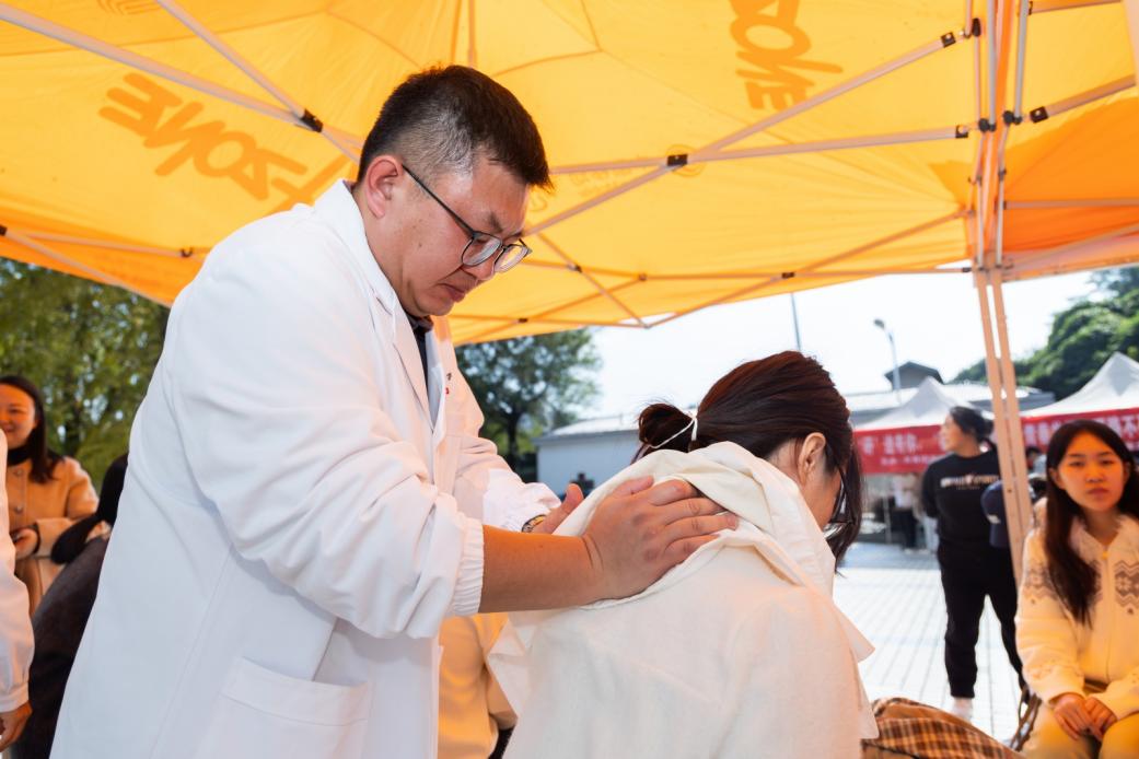 健康咨询与义诊专区内,专业医生面对面提供中医问诊、医保政策解读服务,现场演示的推拿、耳穴贴压等传统疗法,让不少受肩颈酸胀困扰的学生体验后直呼 “几分钟就缓解了不适,太神奇了”。