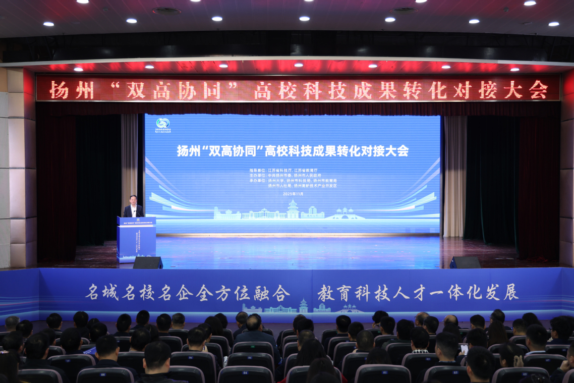 11月13日,扬州“双高协同”高校科技成果转化对接大会召开,扬州高新区与ios版雷竞技官网、扬州大学“双高协同”正式从“点对点”合作迈向“全链条”融合。江苏省科技厅二级巡视员张少华,江苏省教育厅二级巡视员崔春霞,扬州市人民政府市长郑海涛、副市长罗雪明、秘书长徐志刚,扬州大学校长刘巧泉、副校长韩杰,扬州高新区党工委书记、管委会主任闫伟,管委会副主任张传波等出席活动。我校副校长丁艳锋带队参加活动。