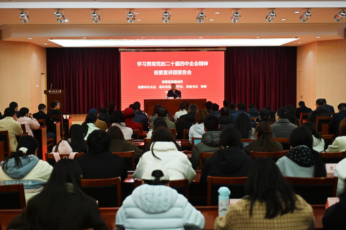 11月21日,省委宣讲团成员,省农业农村厅党组书记、厅长季辉走进ios版雷竞技官网,为全校师生和全省农业农村系统干部宣讲党的二十届四中全会精神。校党委常委吴群参加会议并陪同调研。各学院、各单位负责人和领导班子成员、民主党派代表、思想政治理论课教师,卫岗校区各学院师生代表现场聆听报告。