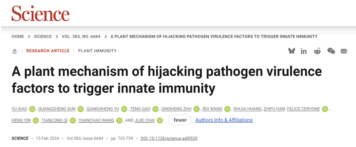 入选成果一:A plant mechanism of hijacking pathogen virulence factors to trigger innate immunity