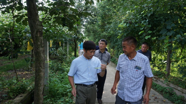 张绍铃教授(左1)查看梨园病虫害发生情况