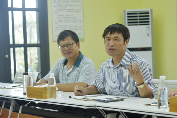 期间,张绍铃教授一行实地考察了睢宁县姚集镇梨产业重大技术协同推广基地,并走访了睢宁县、丰县梁寨等地的多名种梨大户,确保抗洪救灾及灾后恢复生产技术进村、到户。随后,张绍铃教授等与徐州市农业农村综合服务中心、睢宁县农业农村局、丰县农业农村局等地方主管部门管理人员、技术人员、农技推广人员及技术骨干、种植大户等进行了座谈交流。针对梨园普遍出现积水严重的情况,张绍铃教授指出,当前果农要加大机具和人力投入,尽快疏通沟渠,抢排明水,修复水毁苗木;对受淹的梨苗,要及时查苗扶苗,加强肥水管理;同时也要预防高温高湿引发的梨园病虫害的爆发,及时喷布保护性杀菌剂丙森锌、待森锰等。对有明显病害症状的梨树,及时喷施如甲基托布津、吡唑醚菌酯代森联、苯醚甲环唑等治疗药剂进行控制。同时,针对江苏省梅雨季节气候特点及夏季梨园病虫害发生规律等,张绍铃教授强调,在夏季梨树病虫害防治策略上,要关注降雨,遇雨用药,雨前防(病),雨后杀(虫),保果保产。