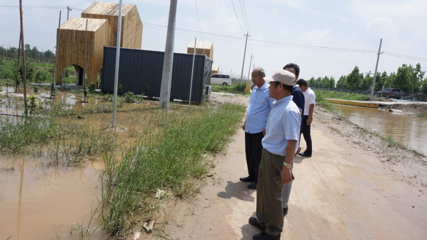 张绍铃教授一行查看梨园淹水情况