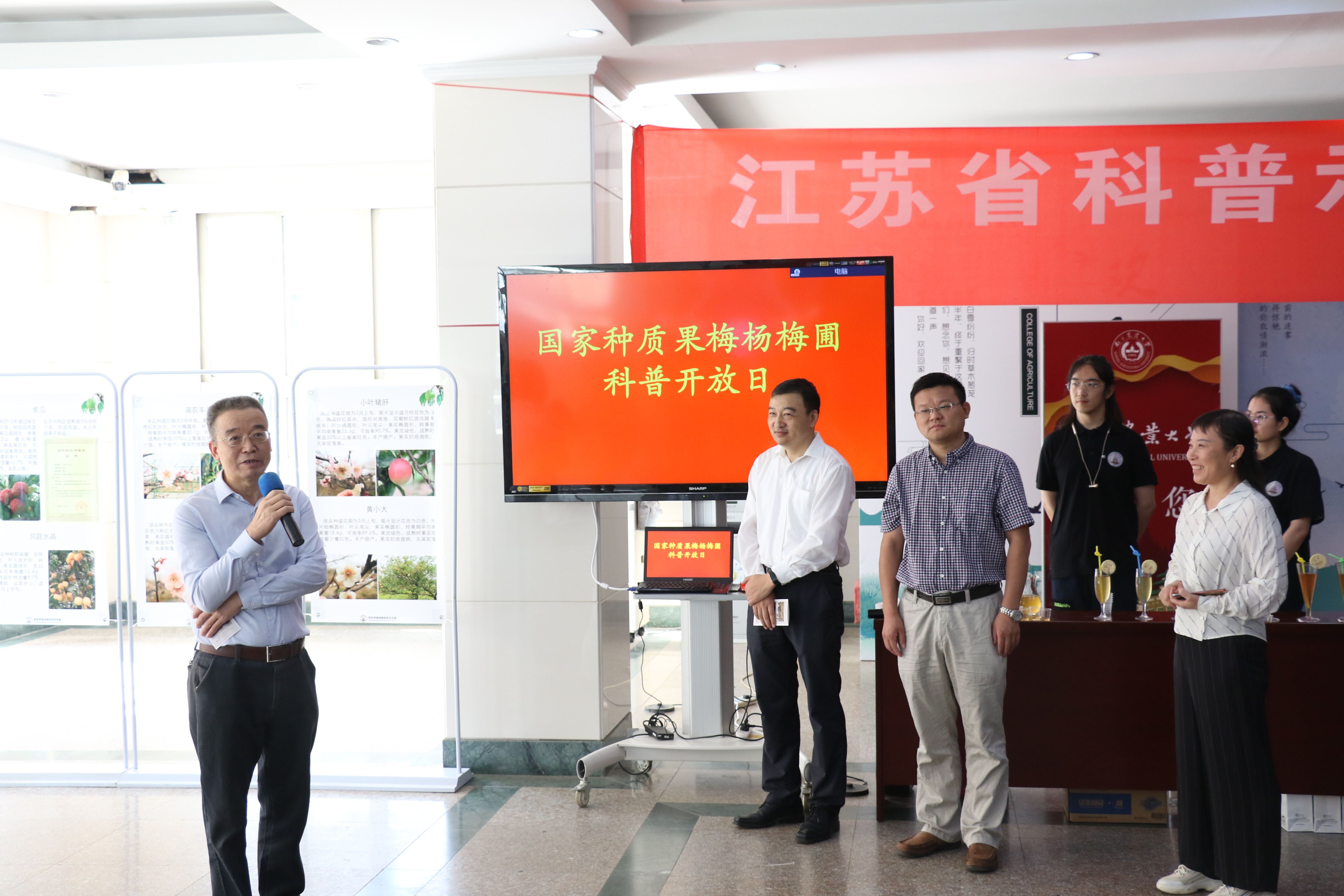 活动开始,资源圃负责人高志红陪同领导们参观了整个展示会场,并对各个展区进行一一解说。何旭平对于此次果梅杨梅圃种质资源科普开放日活动给予了高度评价。俞建飞和吴巨友对此次活动给予充分肯定,并代表学校和学院表态对今后资源圃各项工作的开展提供坚实的后盾和有力的支撑。高志红教授给大家带来了“品梅”科普讲座。
