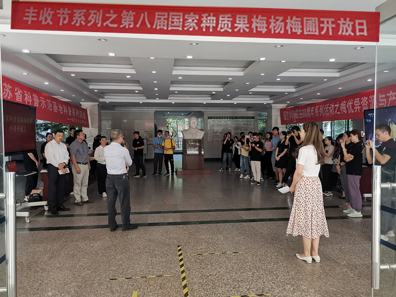 2020年9月20日中国农民丰收节期间国家种质果梅杨梅圃(南京)举办了“丰收节系列——第八届国家种质果梅杨梅圃开放日”活动,活动分为两场:室内展示和基地参观。参加本次活动领导有江苏省农业农村厅种业处处长何旭平,ios版雷竞技官网科研院副院长俞建飞,ios版雷竞技官网园艺学院院长吴巨友。