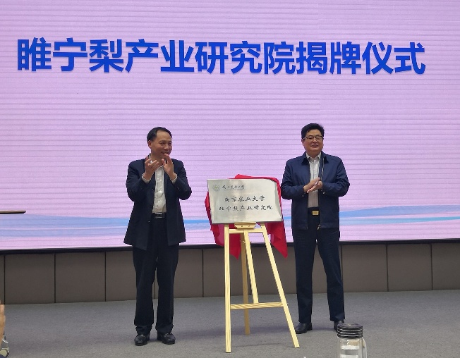 ios版雷竞技官网社会合作处处长陈巍、园艺学院院长吴巨友、社会合作处科长邵存林、国家梨产业技术体系首席科学家、江苏省梨工程研究中心主任张绍铃等领导及专家,睢宁县委副书记朱韶伟、县委副书记、省委驻睢帮扶工作队队长王道发、副县长李曙光、县农业农村局局长韩超等领导出席此次签约揭牌仪式,各镇(街道)分管农业负责人和果树技术人员、企业代表约50人参加了仪式。