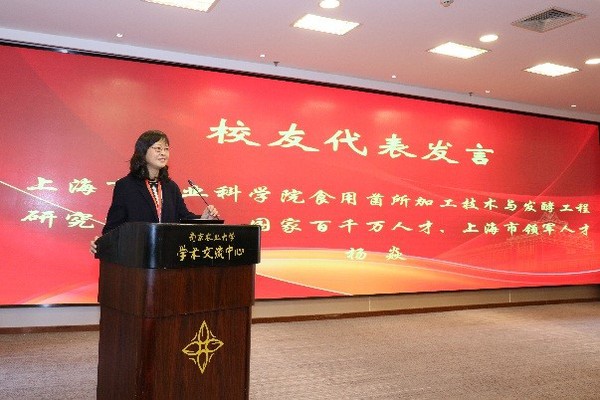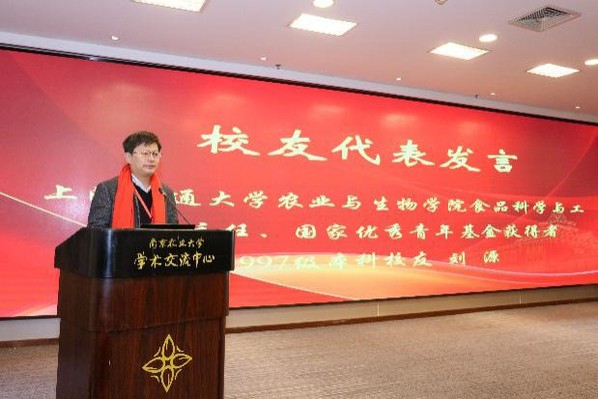 中国食品杂志社副社长、1995级校友孙勇,上海交通大学农业与生物学院食品科学与工程系主任、1997级本科校友刘源教授,南京诺唯赞生物科技有限公司董事长、1998级本科校友曹林,上海市农业科学院食用菌研究所副所长、1988级土壤与植物营养专业校友杨焱作为校友代表依次发言。