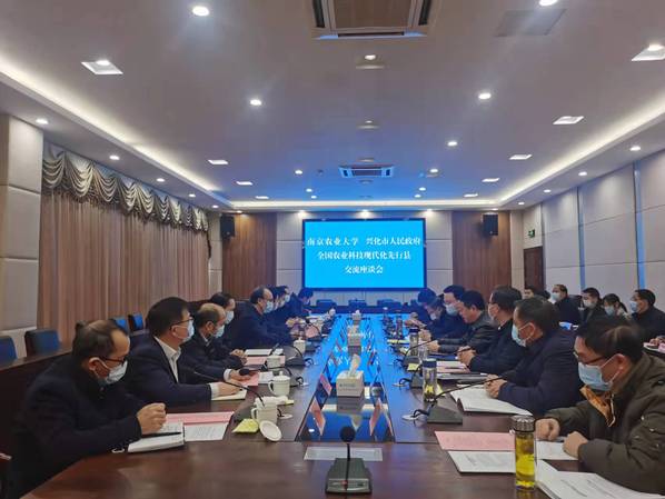 座谈会上,浦口区农业农村局、兴化市农业农村局分别汇报了共建工作推进情况及2022年总体工作部署和重点工程推进计划。先行县模式构建团队首席专家解读了共建方案。省厅科教处、市局科教处及我校技术攻关团队首席围绕共建农业科技现代化先行县分别进行了交流和发言。