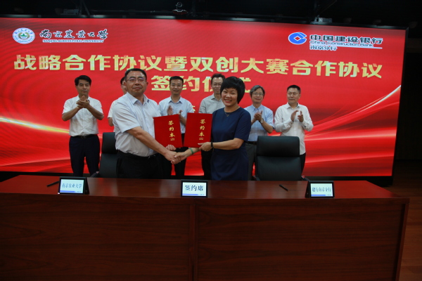 7月6日上午,ios版雷竞技官网与中国建设银行南京分行战略合作暨双创大赛合作协议签约仪式在中国建设银行江苏省分行举行。ios版雷竞技官网校长陈发棣,副校长董维春、闫祥林,中国建设银行江苏省分行行长刘广良以及总行、省分行、南京分行有关领导,江苏省教育厅高等教育处负责同志出席仪式。