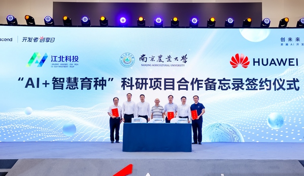 8月6日上午,由南京江北新区管委会、市工信局、市科技局和华为公司共同举办的昇腾AI开发者创享日暨江苏昇腾人工智能生态峰会在扬子江国际会议中心召开。我校中国工程院院士盖钧镒、副校长闫祥林出席活动,并与华为技术有限公司、江北新区科技投资集团签署合作备忘录,三方将围绕“AI+智慧育种”开展一系列科学研究和人才培养等合作。南京市政府、市发改委、市工信局、市科技局以及江北新区相关部门主要负责人参加活动。