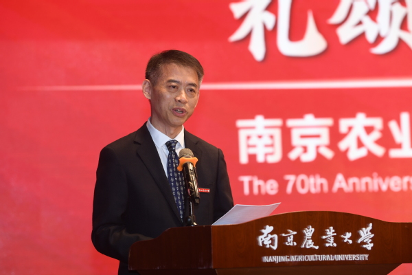 教师代表郑恩来发言,他表示一定会紧跟国家发展战略,为国家农业工程领域培养更多人才,为推动农业机械化及智能化贡献南农力量,为学校建设农业特色世界一流大学的目标添砖加瓦。