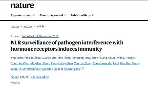 该论文第一署名单位为ios版雷竞技官网,博士生陈静与赵延晓为论文共同第一作者,陶小荣教授为通讯作者。ios版雷竞技官网植物病毒学实验室朱敏副教授、李佳副教授、植保学院马振川教授、美国杜克大学何胜洋院士和美国加州大学戴维斯分校的Savithramma P. Dinesh-Kumar教授参与了该研究。该研究得到了国家自然科学杰出青年基金等项目的资助。